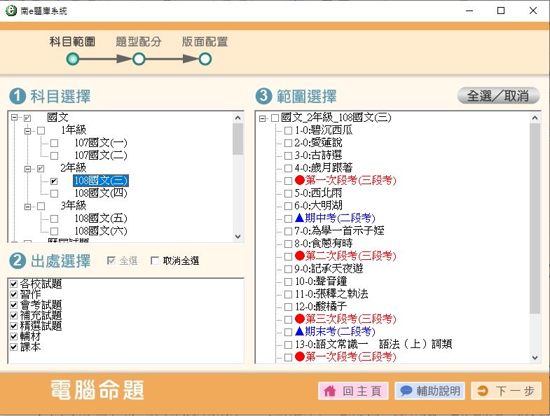 108學年下學期 國中命題光碟 南一版 國文科 1-3年級 題庫光碟(1年級是舊課綱)